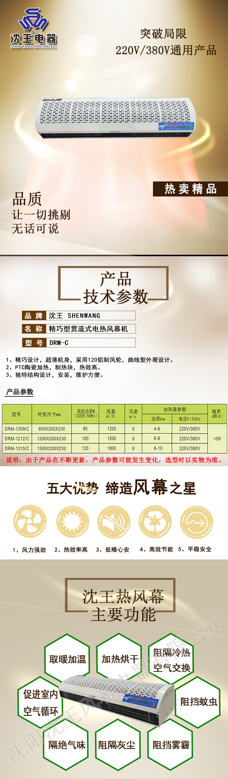 簡介:精巧设计,超薄机身,采用120铝制风轮,曲线型外观设计。PTC陶瓷加热,制热快,热效高。独特结构设计,安装、维护更方便。