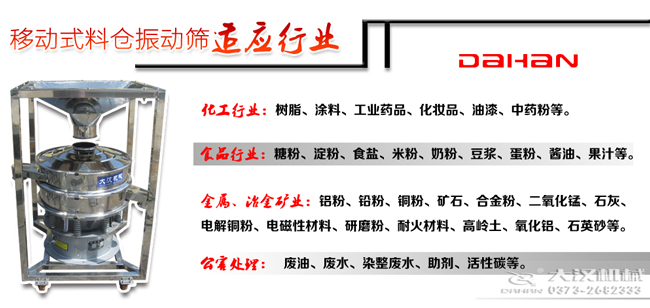 本品大漢公司研制的移動式振動篩料倉一體機,底部加裝可移動式萬向輪,帶進料倉,可將物料一次性裝滿料倉,然后通過調(diào)節(jié)料倉上的蝶閥控制物流進入振動篩的流量進行篩分,本品的特點間歇性加料,不用工人不間斷投料節(jié)省人工,蝶閥控制流量大小能提高篩分精度,同時可將振動篩移動作業(yè),滿足不同地點的工作需要。