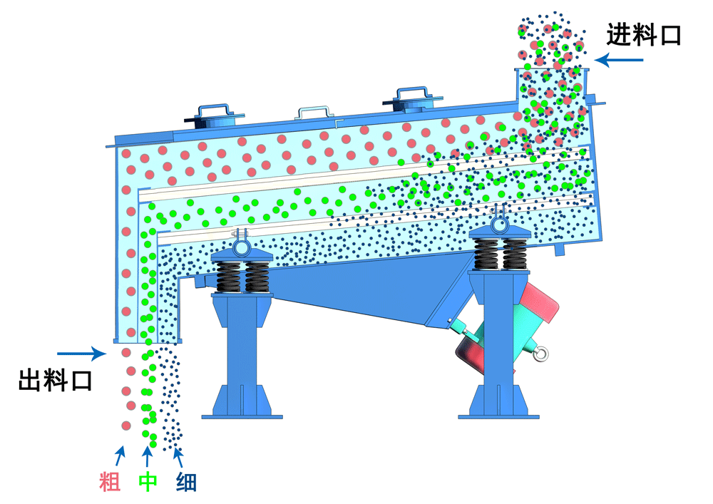 標(biāo)準(zhǔn)的振動篩分機(jī)設(shè)備工作原理是利用振動原理來實(shí)現(xiàn)不同物料分級或篩選,通過振動源帶動篩箱運(yùn)動,使物料在篩面上做定向運(yùn)動,依據(jù)顆粒大小差異透過不同孔徑的篩網(wǎng),從而完成物料的分離與提純。根據(jù)振動篩分機(jī)設(shè)備的工作原理,制造設(shè)備的型號也不同。
